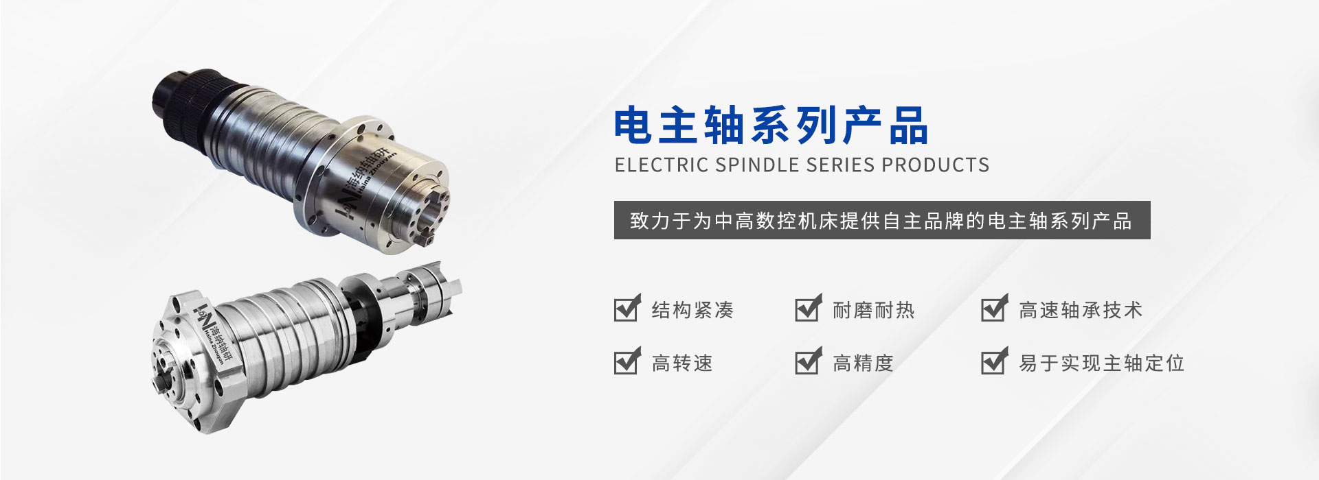 公司致力于為中高數(shù)控機(jī)床提供自主研發(fā)自主品牌的電主軸系列產(chǎn)品,通過堅持不懈的技術(shù)攻關(guān)和持之以恒的品質(zhì)管理,嚴(yán)格生產(chǎn)工序控制,售前售后的緊密跟蹤逐步形成一套完整成熟的業(yè)務(wù)體系。為不同類型機(jī)床提供主軸設(shè)計,現(xiàn)有數(shù)控車床主軸單元,數(shù)控車床電主軸、加工中 心電主軸及直聯(lián)機(jī)械主軸,走心車床電主軸,機(jī)械主軸,磨床電主軸,光伏主軸等系列主軸產(chǎn)品。